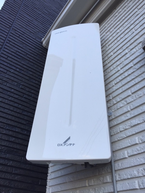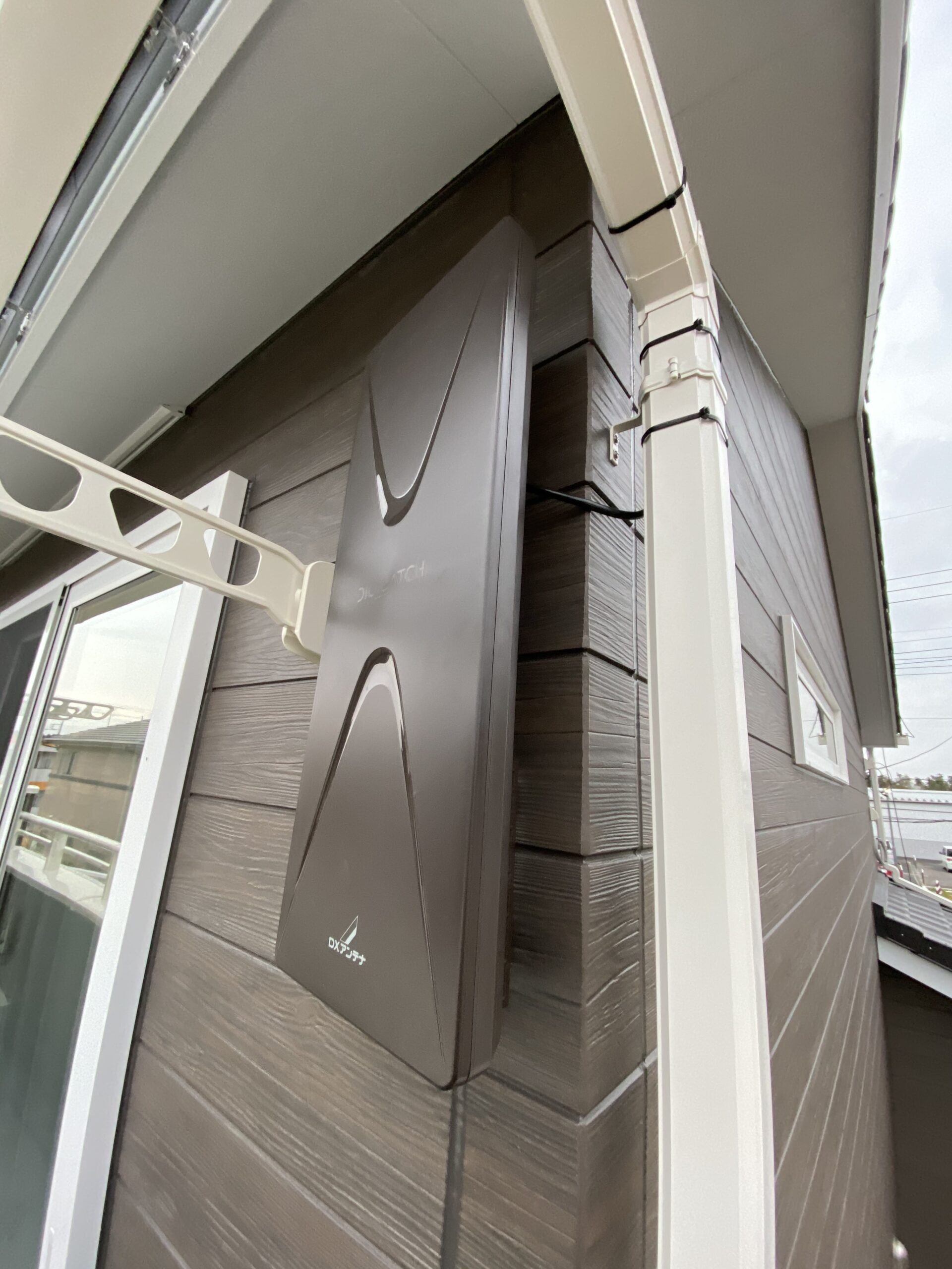 外壁カラーに合わせて、ブラックブラウンのデザインアンテナを取り付けました!
