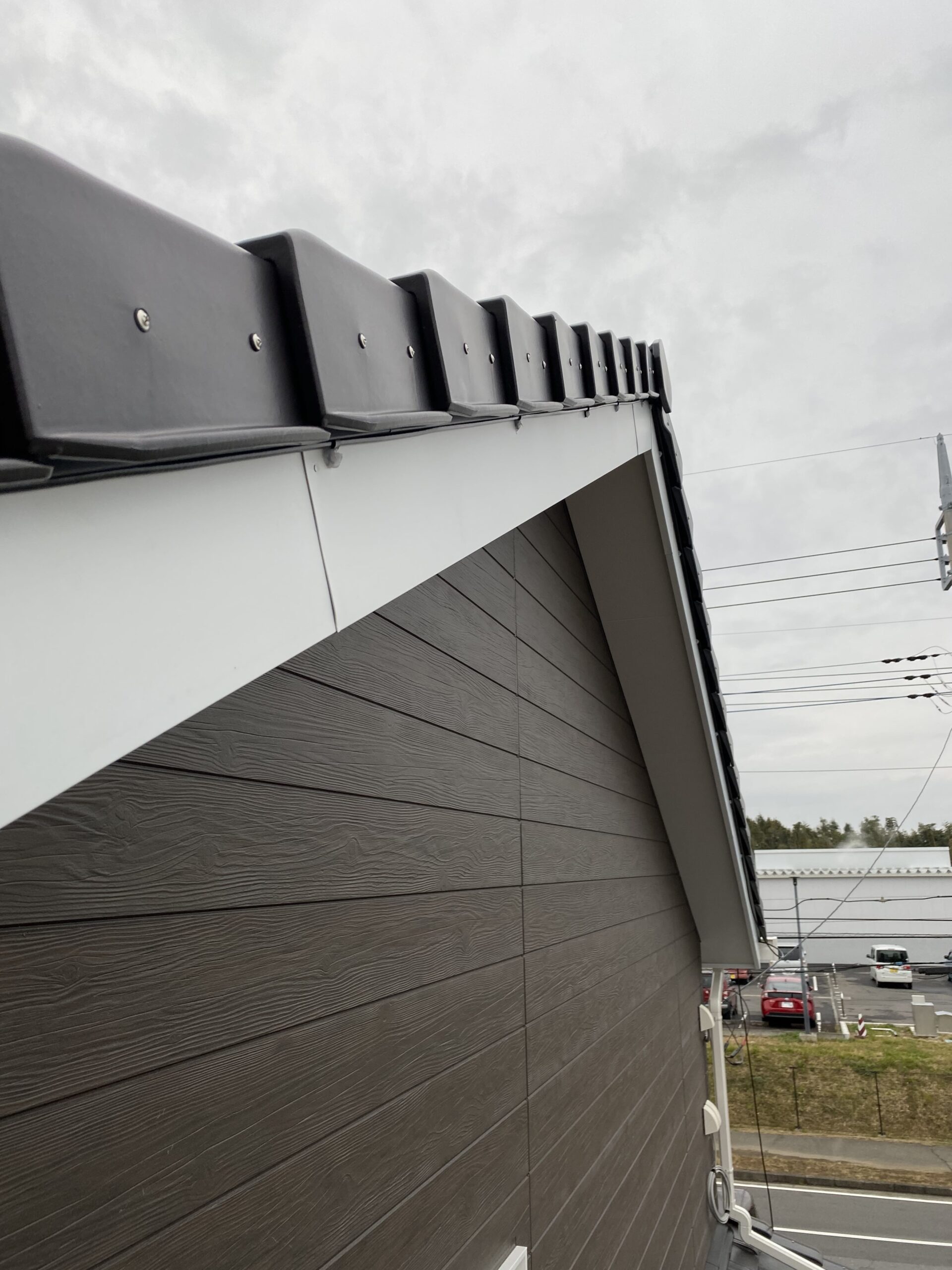 左の写真:破風板と屋根材の間に、同軸ケーブルを這わせています!拡大してみないとわからないほど綺麗ですよね!