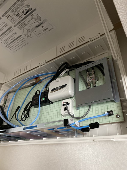また、ブースターは、室内にマルチメディアボックスがございましたので、その中へ取り付けています!