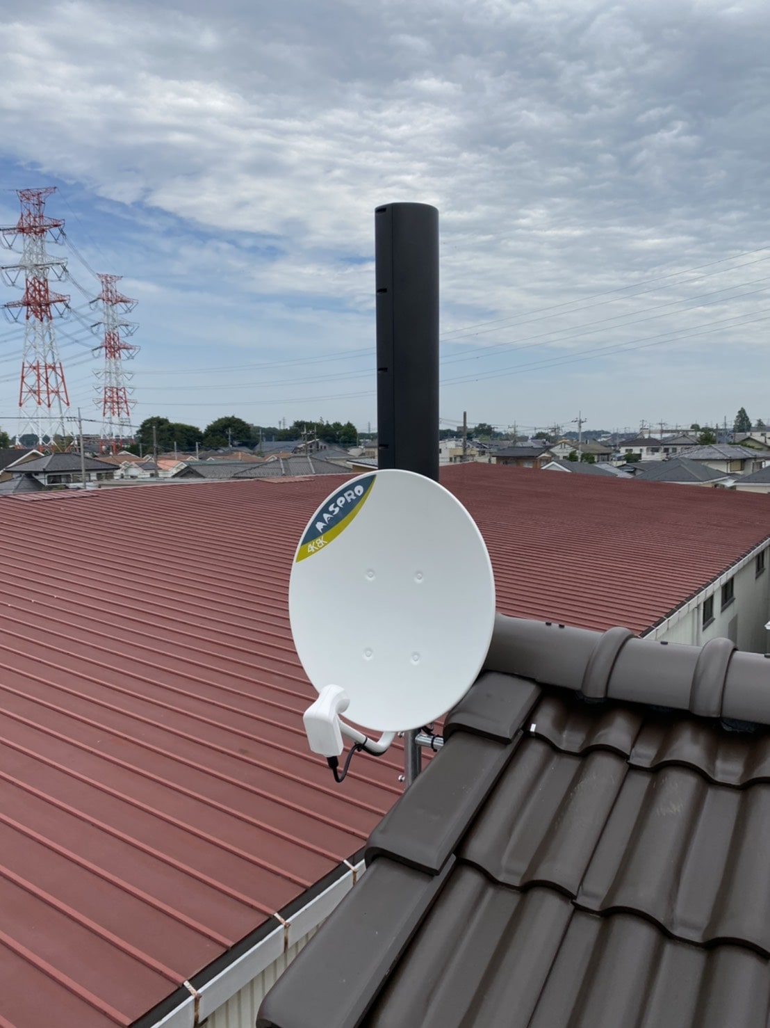 左のお写真には、黒くて細長いユニコーンアンテナが設置、右のお写真には白くて丸いBS/CSアンテナが破風板に設置してあるのがわかりますね🧐