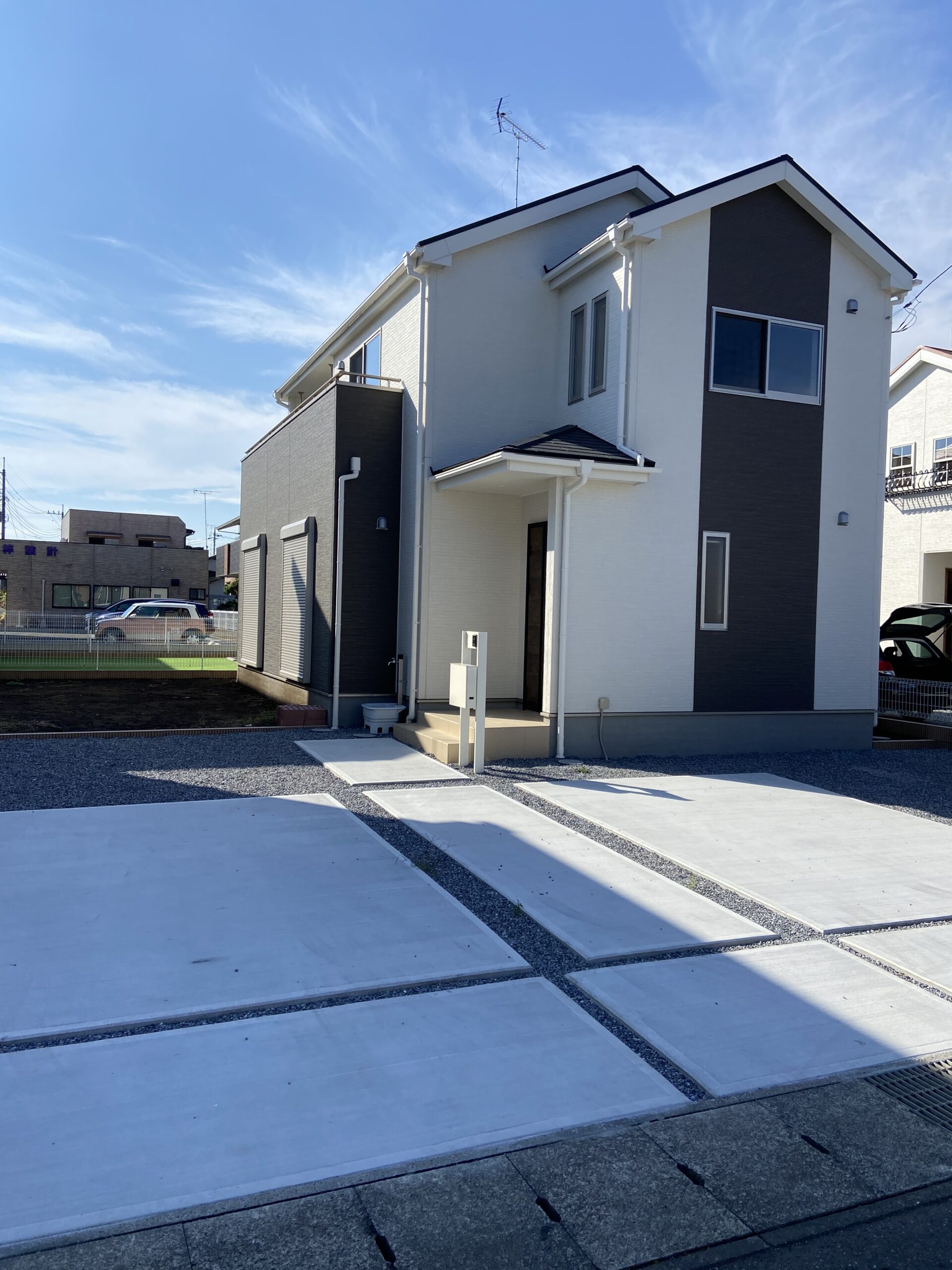 広い敷地に建てられた、オシャレなツートンカラーの佇まいが印象的ですね🏠✨屋根上には、先ほどご紹介したテレビアンテナも写っています🧐