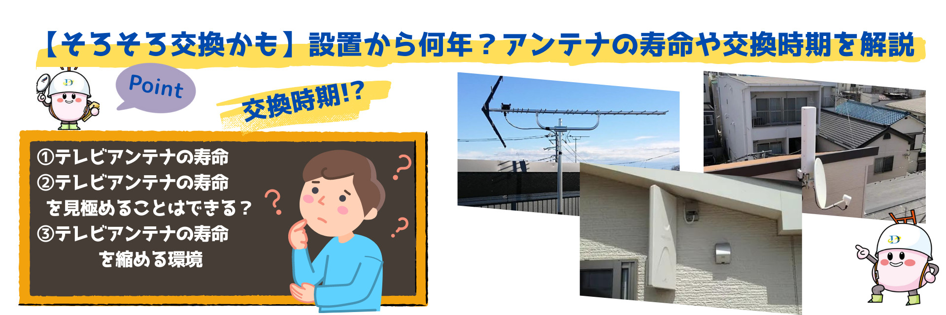 ただし、他社よりも明らかに保証年数が長すぎるような業者にはご注意ください。通常、アンテナの保証は寿命による故障トラブルには対応していません。このためアンテナの寿命とされる10年~15年よりも短い保証期間であれば適正といえます。