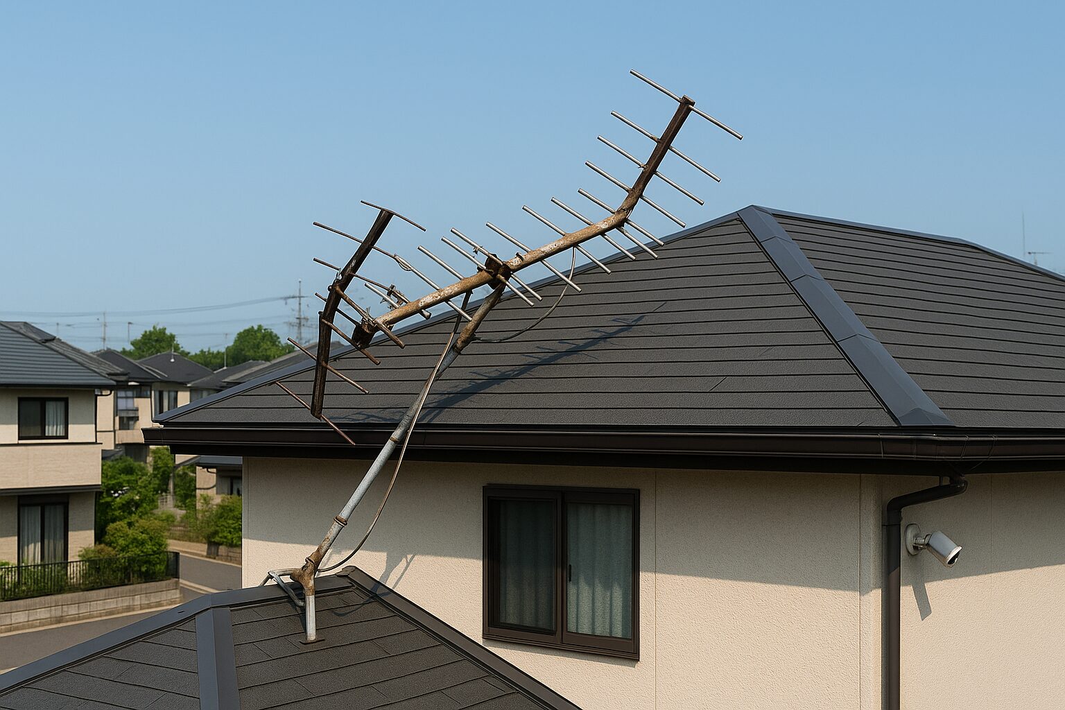 アンテナの倒壊には、主に3つのパターンがあります。アンテナ本体が強風で折れてしまうケース、支柱が根元から倒れるケース、屋根からアンテナごと飛ばされてしまうケースです。設置から10年以上経過したアンテナでは、金属部分の腐食や固定用ワイヤーの劣化により、台風の強風に耐えられなくなる危険性が高まります。