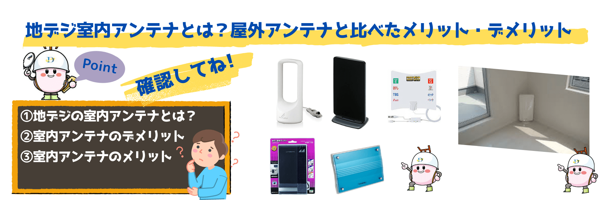事前に確認すべき点は、まず既存のアンテナ設備の状況です。地デジアンテナが設置済みか、BS/CSアンテナも併せて増設したいかなどを確認しましょう。電翔(でんしょう)のように、アンテナ設置からテレビ端子増設まで一括で対応してくれる業者を選ぶと便利です。また、C&Fのブログなどでも、アンテナ工事に関する役立つ情報が掲載されているので、参考にしてみてください。