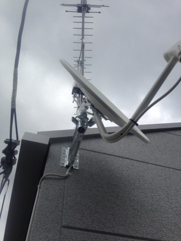 BS放送の電波は特定の方向から届くため、アンテナをその方向に正確に向ける必要があります。大阪のような都市部では、少しの角度の違いでも受信が不安定になる場合があるため、電波測定器を使用して、衛星方向に向けた正確な角度を設定します。角度が適切であれば、映像の乱れが発生しにくくなります。 - アンテナの固定作業