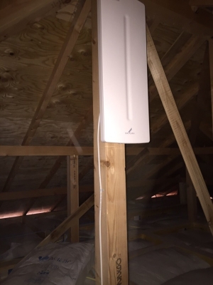 屋根裏での設置ですと、おうちの外にアンテナが出ないので外観もスッキリしたままでございます。