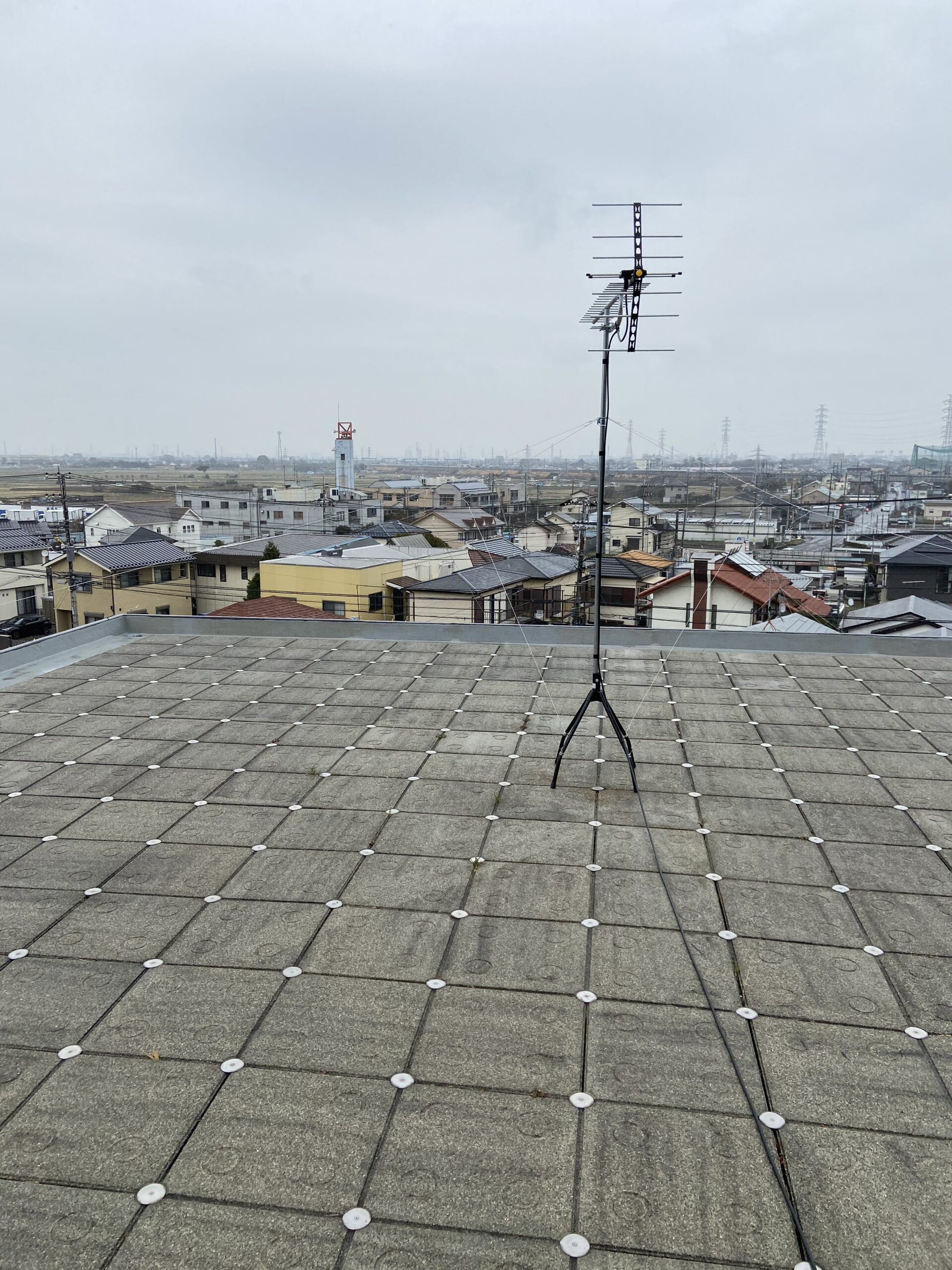 いつも通り、屋根上にアンテナを設置したら、