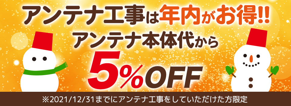 2021年内にアンテナ工事完了するようにご予約いただきますと、アンテナ本体代を5%OFFでご提供いたします!!