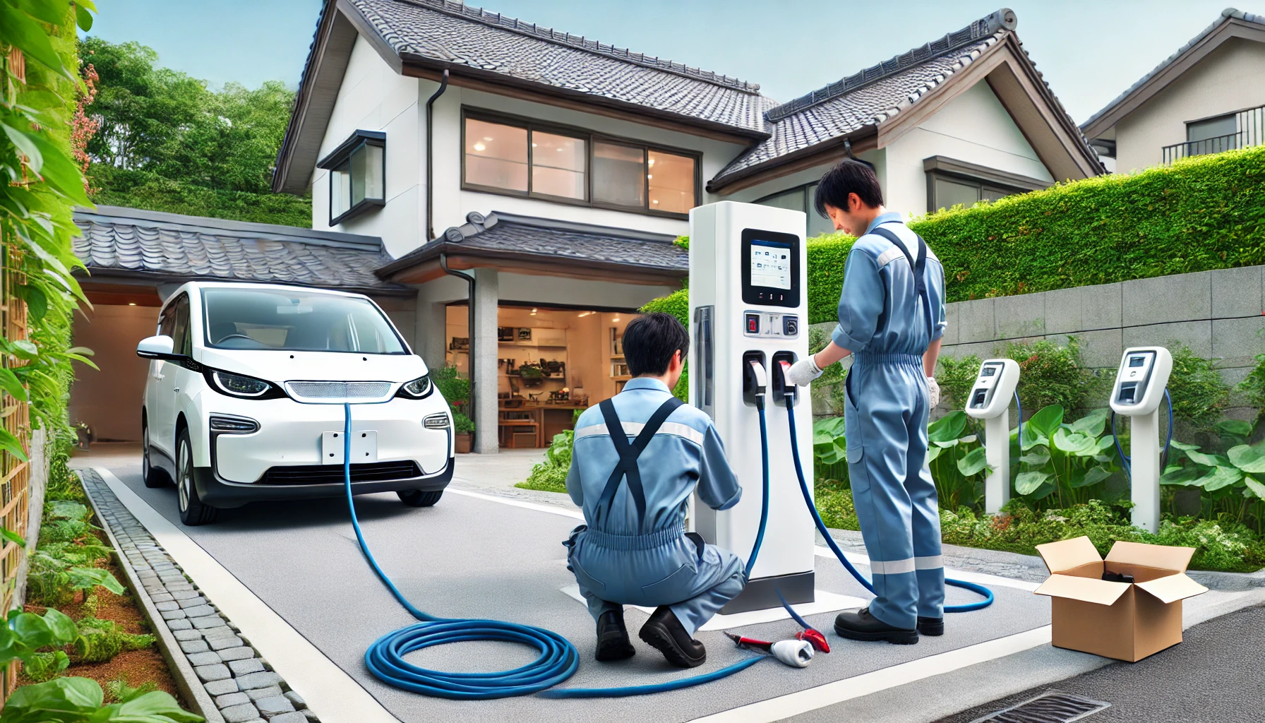 • スペース: 充電器の設置場所が必要です。特に、都市部の狭小住宅や集合住宅では、設置スペースの確保が課題となります。また、ガレージやカーポートがない場合は、外部に防水対策を施した設置が必要です。