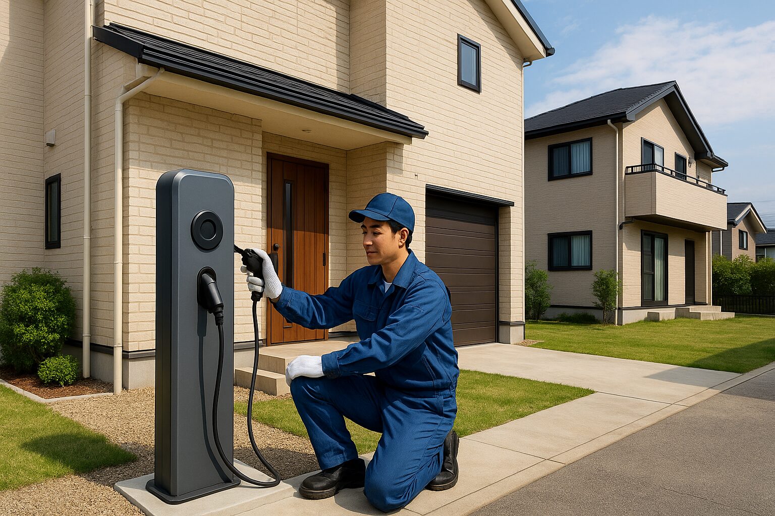 雨風を避けられる場所や車両の充電口に近い位置への設置が望ましいです。電力容量の調整や分電盤の改修が必要な場合は、専門業者に相談しましょう。