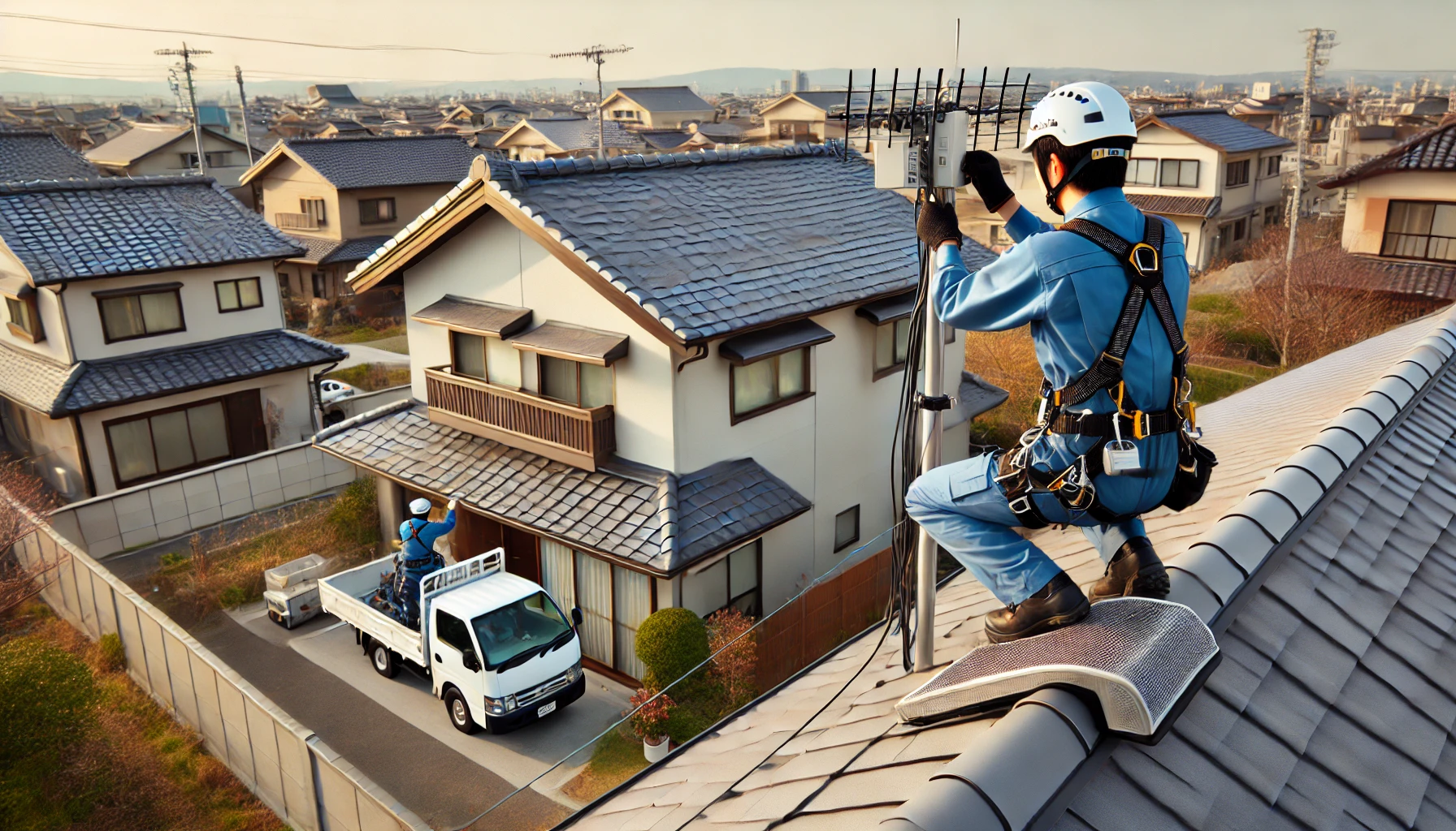 - 業者によるプロの設置: アンテナの設置は、プロに依頼するのが最も安全です。地域に密着した業者であれば、群馬県特有の気候や風の強さを理解しており、それに応じた最適な設置方法を提案してくれます。たとえば、固定方法や設置場所についても、業者の知識と経験を活かすことで、より強固な設置が実現します。