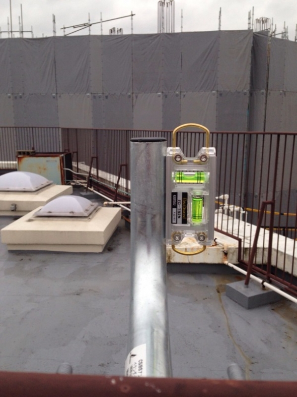 今度の設置場所は隣りの建物から離れるように反対側へお取り付けいたしました。