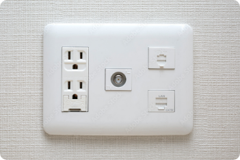 LAN端子のない部屋までLANケーブルを配線する場合は、壁に端子を設置します。壁内に配線したLANケーブルを壁の端子を接続。 電源コンセントやアンテナ端子と組み合わせることもできます。 また、壁にLAN端子を新設する場合は穴あけ加工が必要です。