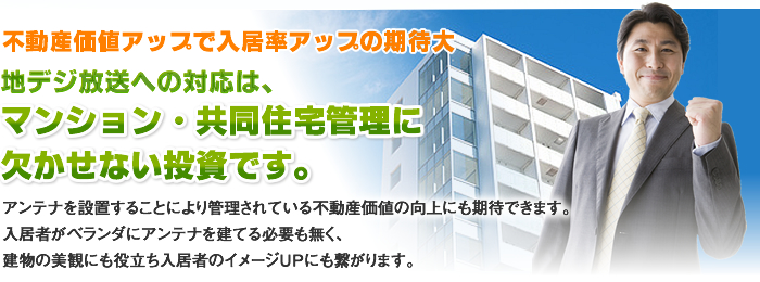 各部屋で地デジ放送が受信できることで、人気が高まり入居率アップに繋がります。