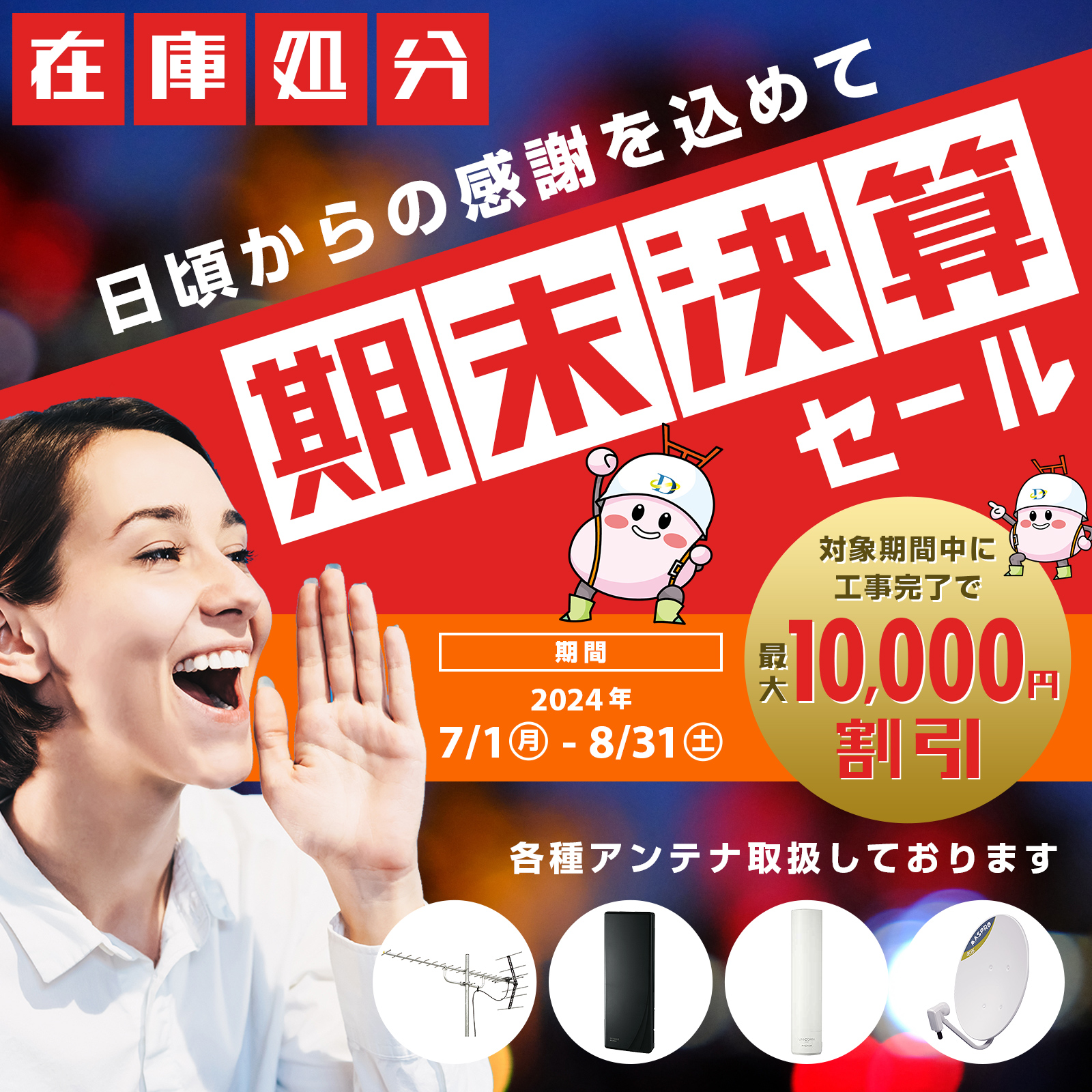 期間限定で、アンテナ工事が最大10,000円引きになります。