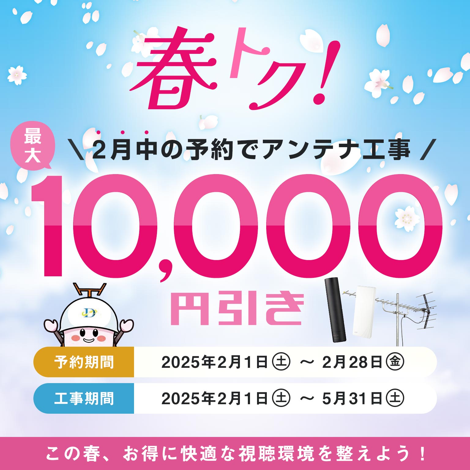 春トク!2月中の予約でアンテナ工事最大10,000円引き