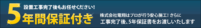 電翔は安心の5年間無償保証。アンテナ設置後の予期せぬトラブルやアクシデントに対応するため、工事終了後には保証書をお渡ししています。