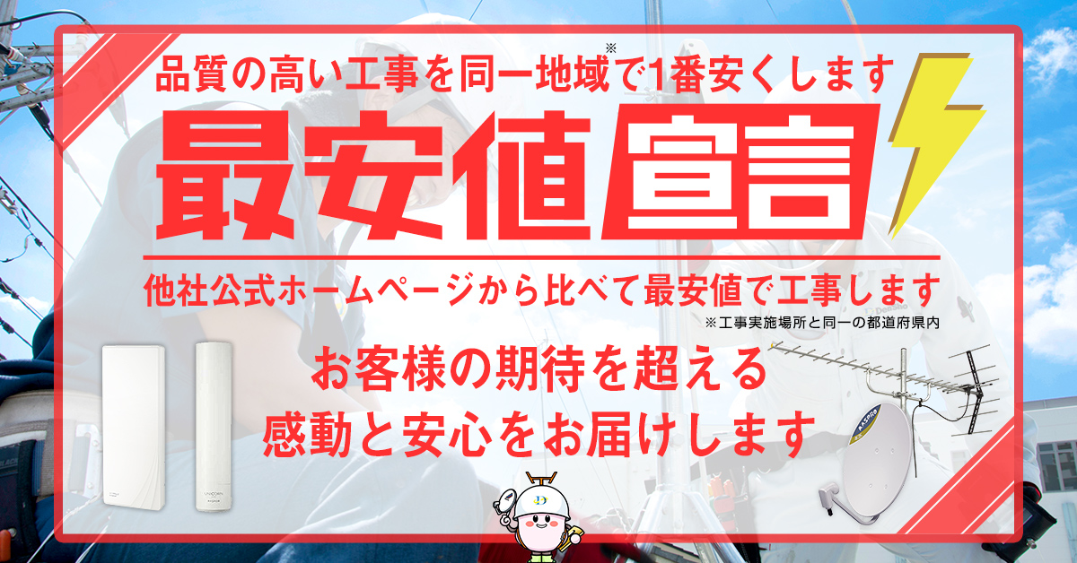- 料金のお支払いは、アンテナ工事施工後、現地にてご精算をお願い致します。