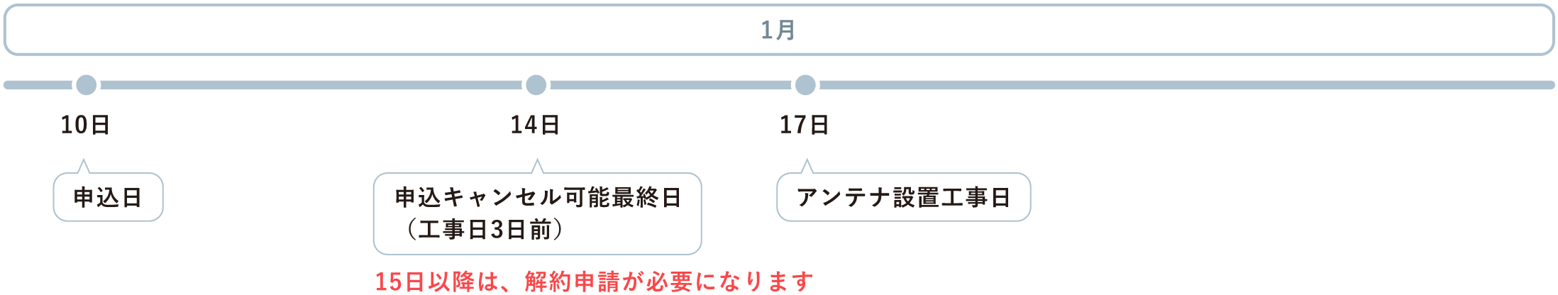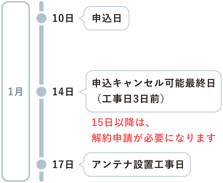 アンテナ設置工事日の3日前までは、申込キャンセルが可能です。