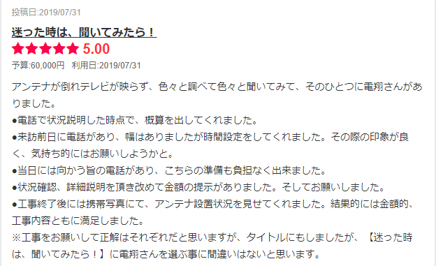 電翔ではお客様にご満足していただくため、丁寧な施工はもちろん、お見積りの詳細や