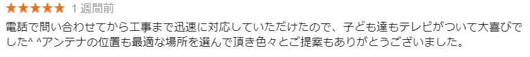 無事テレビが映りお子様達とご一緒に喜んでいただいたお客様からの口コミです😆