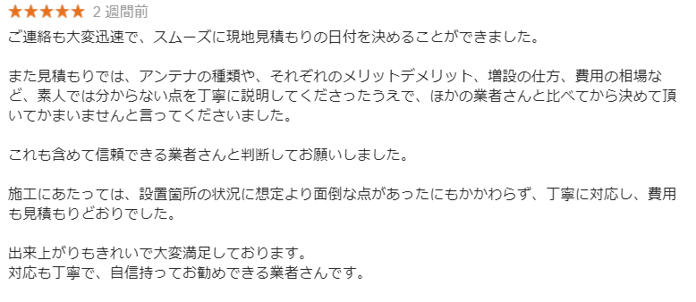アンテナ工事電翔・2020年7月の口コミを紹介!