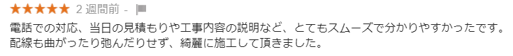 現地見積りご希望から、電翔を信頼してくださって工事をご依頼くださったお客様からの口コミです😆