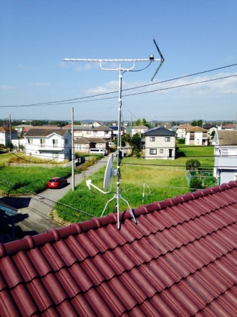 赤い屋根に八木式アンテナとBS/CSアンテナ