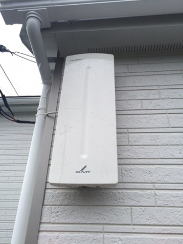 • デザインアンテナのホワイトを専用の取付金具を用いて壁面設置しました。外観に馴染むだけでなく、性能は八木式アンテナと同等レベル!約2.3㎏と軽量なので、外壁への負担もとても少なく済みます。