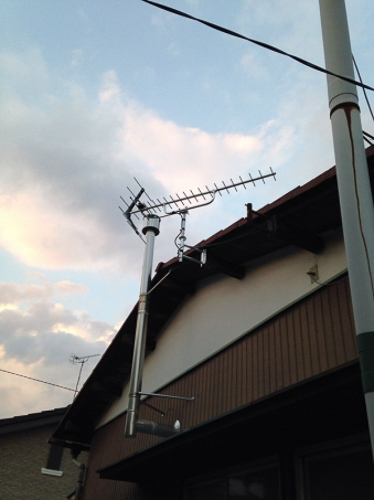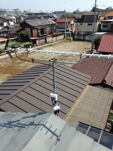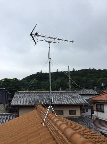 群馬県桐生市のテレビアンテナ工事施工例です。桐生市は多くを山間部が占めますが、前橋局からも近く十分にテレビアンテナの設置が可能なエリアです。地形を考慮して、相生町などでもアンテナの屋根上設置が多く採用されています。新設ほか撤去・処分、修理など群馬県で施工実績豊富な株式会社電翔へぜひお任せください。格安価格でアンテナ設置工事をご提案させていただきます。