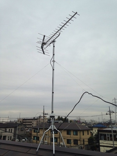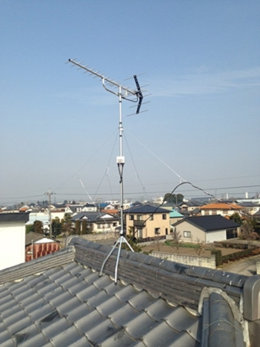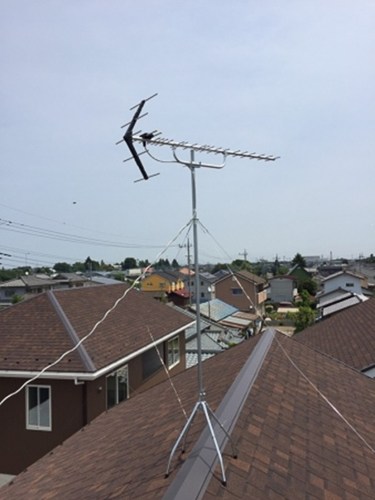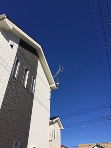 群馬県邑楽郡大泉町のテレビアンテナ工事施工例です。邑楽郡大泉町の住宅は一軒家やアパートなどの集合住宅が主で、テレビアンテナの導入も高い傾向にあります。一番多いプランは、地デジアンテナの屋根上設置。衛星放送のセット工事も人気です。新設ほか撤去・処分、修理など群馬県で施工実績豊富な株式会社電翔へぜひお任せください。格安価格でアンテナ設置工事をご提案させていただきます。