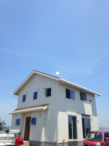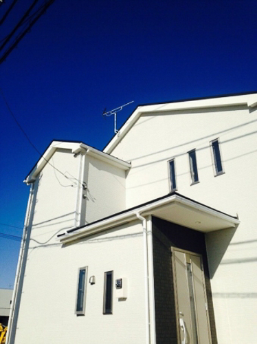 • 自然素材を使い、ナチュラルテイストな注文住宅として人気のアットナチュレ様物件です。外観のテイストに馴染むよう、地デジアンテナはデザインアンテナ(白)を設置。お家のエクステリアの一つとして、オシャレさ重視でテレビアンテナを選ぶのもおすすめです。