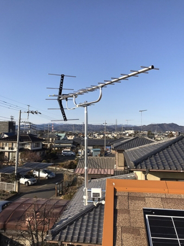 群馬県太田市のテレビアンテナ工事施工例です。太田市は農業・工業だけでなく、観光地としても栄えています。地デジは、UHFアンテナの屋根上設置が多数。ですが、近年デザインアンテナの採用や屋根裏部屋設置の人気も高まっています。新設ほか撤去・処分、修理など群馬県で施工実績豊富な株式会社電翔へぜひお任せください。格安価格でアンテナ設置工事をご提案させていただきます。