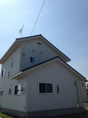 • 長閑な田園風景に佇む、新築物件にアンテナ工事に伺いました。アンテナは地デジのUHFアンテナと、BSCS用のパラボラアンテナを採用。新4K8K放送など、バラエティ豊かな番組視聴ができる人気のセット工事プランです。