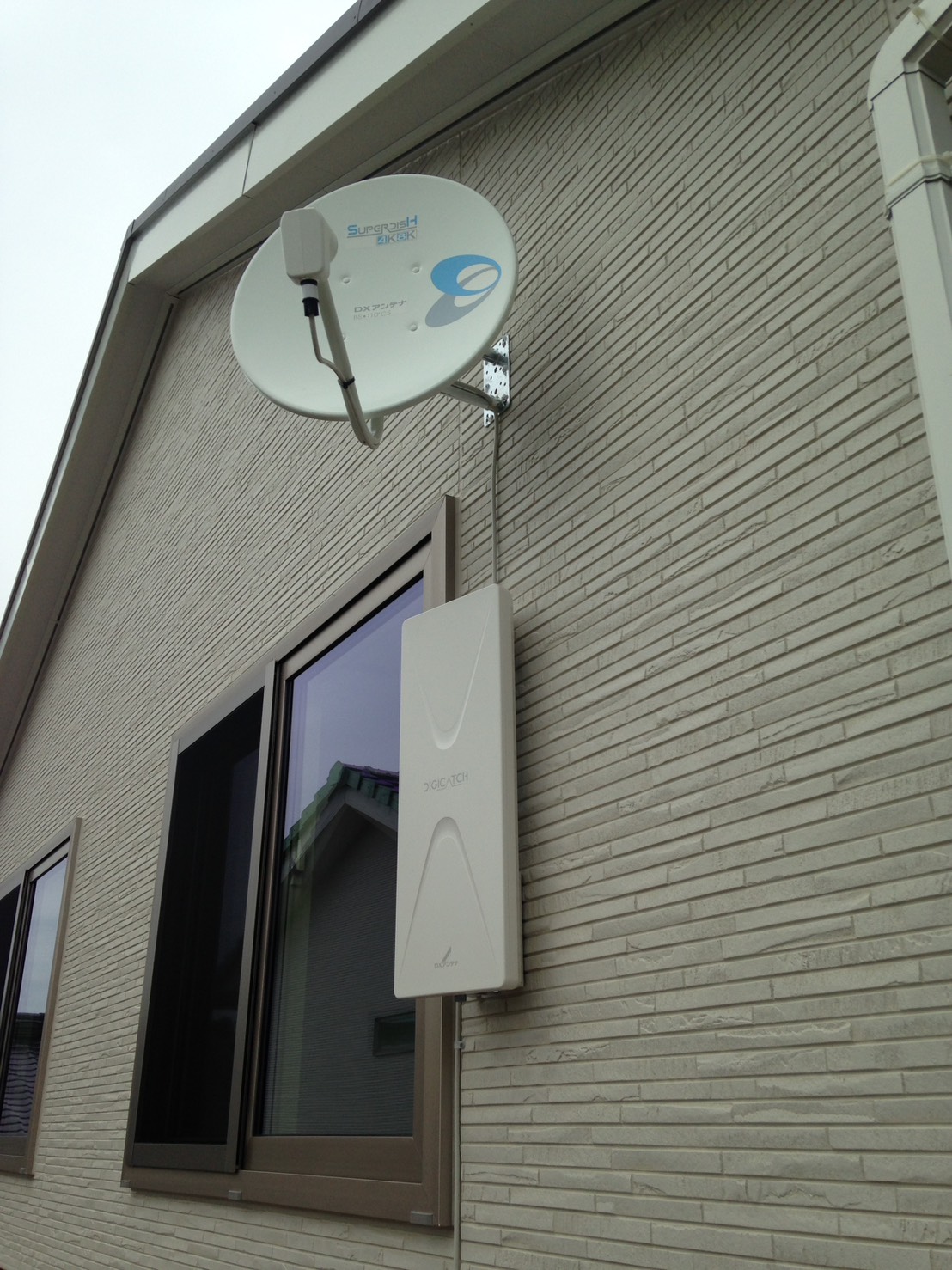 壁面取付 デザインアンテナとBSアンテナ工事