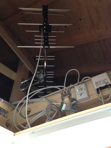 - 地デジアンテナの屋根裏部屋設置事例です。外からは全く見えないので、アンテナの武骨な見た目が気になる方におすすめの設置方法です。野ざらしにならないので耐用年数のアップも期待できますよ。室内のデッドスペース活用にも◎。
