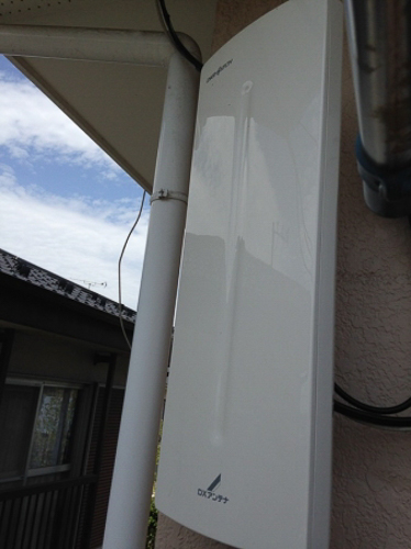 - 軒下に収まる薄さのコンパクトなデザインアンテナです。従来の骨型アンテナに代わり、新築のお客様を中心に工事の受注が増えています。厚さは約10cm程度。アンテナ本体の見た目のオシャレさにもこだわれる時代になってきました。