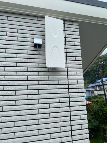 - デザインアンテナの壁面設置例です。一条工務店様の特徴でもあるこの外壁タイルは、アンテナ工事とも相性抜群。タイルの溝に配線が収まります。配線が目立つことなく、見た目がすっきりした印象になります。