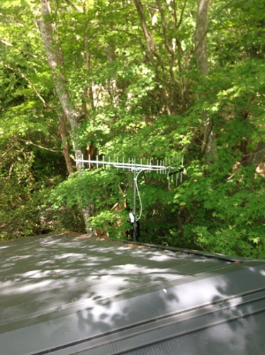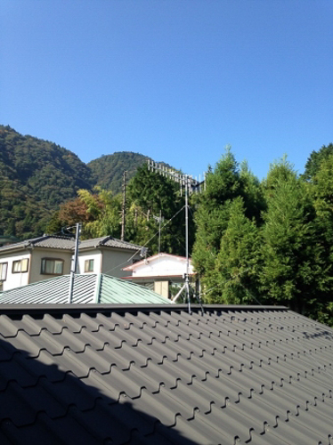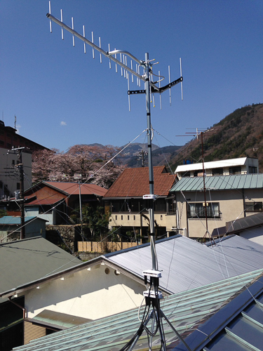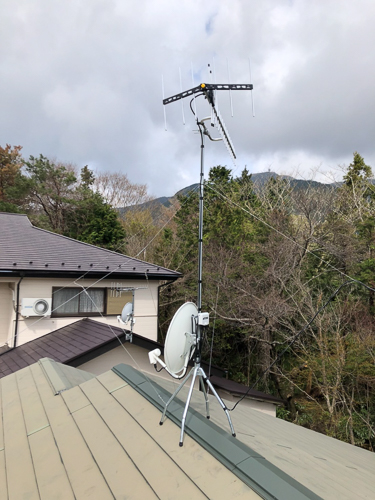 - 屋根上に、昔ながらの八木式アンテナを取り付けました。山間部は山や窪地故に電波が届きにくいことも。その分、アンテナの設置位置を高くしてカバーしています。箱根町のアンテナ工事も電翔にお任せください。