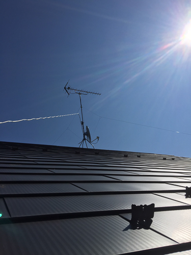 • 洋風瓦の屋根上もアンテナ設置できます。この施工例ではUHFアンテナとBS/CSアンテナを使用して地デジと衛星放送の視聴を実現。屋根上は足場としても使用させていただきますが、賠償責任保険加入の上、大切なご物件を傷めないよう細心の注意を払っています。