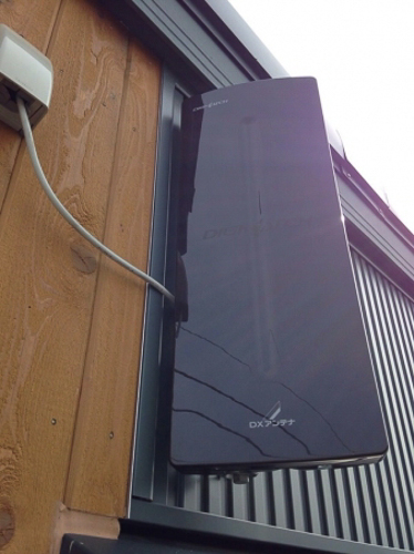 • 黒い壁にぴったりなブラック色のデザインアンテナをチョイス。外観と同系色で、建物の一部としてさり気なく取り付けられました。この他、ホワイト、ブラウン、ベージュの計4色から、お家の色合いに合わせてお好みでお選びいただけます。