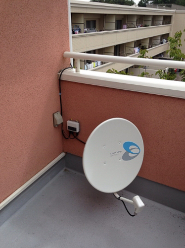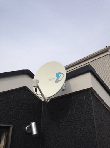 • 他社NGでも、電翔なら3階建て住宅もアンテナの取り付けが可能です。今回は地デジ用のUHFアンテナと、衛星放送のパラボラアンテナを設置しました。衛星の後付けもできますが同時工事で、設置費用も大幅ダウン!