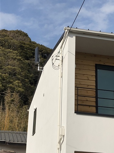 • 片流れ屋根の場合、八木式アンテナは取付金具を使用し、破風板または壁面へアンテナを取り付けます。また自然が多いご地域では、電波到来方向にある林や山が電波を遮ることがあり、安定した受信が難しいこともありますが、電翔ではそのような場合も現地での無料見積りで、事前に不安を解決できます!