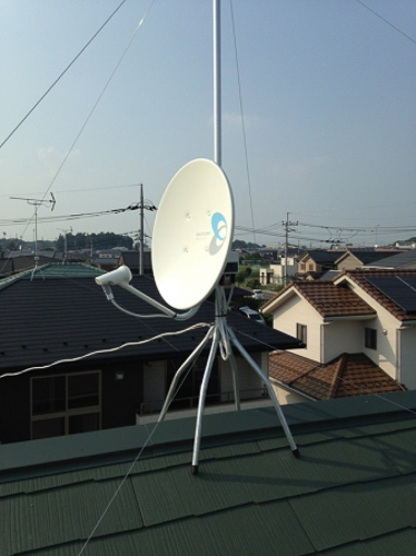 - 地デジのUHFアンテナと、BS/CS110°アンテナの設置事例です。屋根上設置場の場合は、一本のマストに2種類のアンテナをまとめてしまうのがスタンダード。マストを長くしすぎると風に煽られやすいので、電波状況を見極めて調整しています。