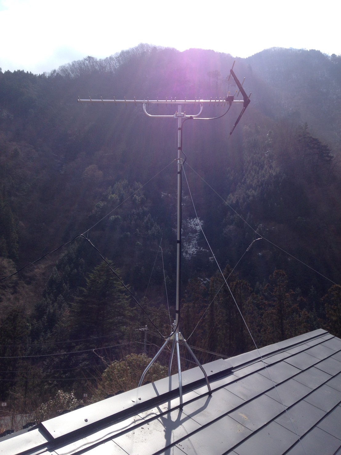 西多摩郡奥多摩町境屋根上設置 八木式アンテナ工事