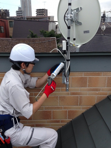 • 工事内容:UHFアンテナとBS/CSアンテナの壁面取り付け